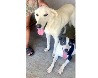 28/02/2022 BIANCA - Labradora e Companheira – Esta linda de olhos cor de mel, tem uns 8 meses e porte grande e sua companheira, uma mistura de border de porte médio e uns 8 meses também esperam por umm lar, a menor considera a maior sua mãe, vive "grudada' e são meigas, obedientes, companheiras e convivem muito bem com outros cães, adoram crianças e ignoram gatos. Castradas. RS. Contato: (51) 99941.1188 (WhatsApp) com Carla.