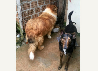 30/06/2019 COLLIE IDOSA e vira-latinha - Esta Collie linda grandona é querida, meiga, simpática, peludíssima, pura alegria, mesmo depois de ter sido largada na rua já idosa. Está saudável, tem porte grande e uns 9 anos. É meiga, obediente, companheira e comportadíssima. Convive muito bem com outros cães (adora brincar com a cadelinha de 9 meses média que está presa com ela no canilzinho e também espera por um lar), gatos e adora crianças! Castradas. RS. Para dar uma chance deste serzinho ter um lar nos últimos anos de vida e também para a vira-latinha que já deste os primeiros meses de vida sofreu abandonada na rua, entre em contato com Carla por e-mail.