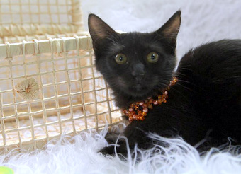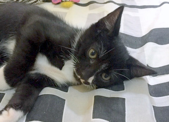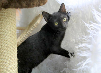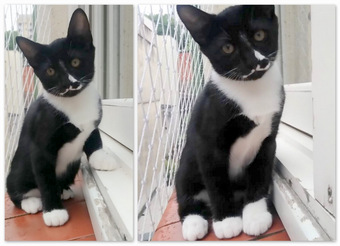 Ele é tímido, ronrona e é muito curioso.