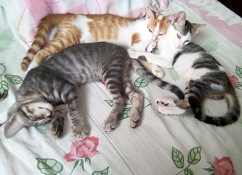 19/01/2019 FLORA & AMORA - São as únicas meninas de uma gatinha de rua muito sofrida, elas são muito grudadas, estão sempre juntinhas, correndo, comendo, dormindo. São falantes, carinhosas, adoram carinho, colo. Aprox. 4 meses, a mãe é negativa para fiv/felv. Adoção seria o ideal as pequenas juntas, mas se não for possível podem ser separadas... Serão entregues castradas na casa do adotante, somente para aptos e casas teladas, criação indoor sem acesso a rua. Dúvidas, perguntas, interesse na adoção entre em contato através do e-mail solicite o formulário de adoção. Contatos com Josi.