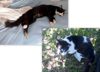 Adora carinho, ronrona, gosta de ficar curtindo os passarinhos e as borboletas pela tela. Ela tem cerca de 3 anos, castrada, desverminada e despulgada. A Molly é muito tranquila, ronrona, é curiosa e adora tirar uma soneca. Tem cerca de 1 ano e meio, castrada, desverninada e despulgada.
