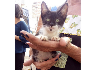 Nasceu no dia 20/outubro e está com 2 meses e meio. Come ração, usa a caixinha de areia e está desverminado. Recomendo a castração para que seu amigo fique mais seguro. Indico veterinário com baixo custo. Para adotar, entre em contato: (51) 98455.3235 (whats) com Giovana.