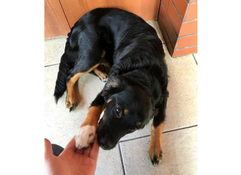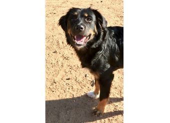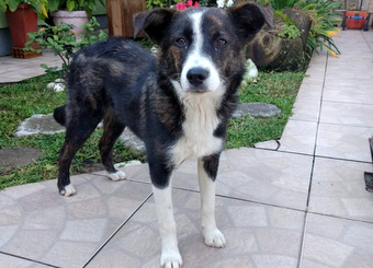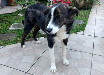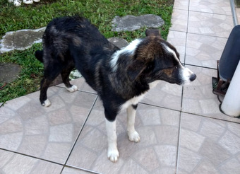 05/10/2018 FILHOTE - Filhote fêmea de seis meses, 12 kg, possível porte M. Não deve crescer muito mais que isso. Está vacinada e vermifugada. Pelo brilhante, patinha branca. Lembra mini Bernese. Filhote com bastante energia, precisa de espaço para brincadeiras e corridas, preferencialmente sítio ou casa com pátio. Contato: (51) 98111.7228 com Felipe Rodrigues.