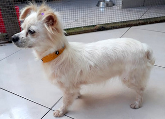 21/09/2018 CÃOZINHO EM BUSCA DE UM LAR - Pelos brancos, pequeno porte, jovem. Não é filhote, mas não é adulto. Dei vacinas e está sem pulgas. Muito brincalhão e precisa de atenção que não posso dar. Já tenho uma senhora em casa que se machucou com ele, mas é bastante independente e companheiro. Parece vira latas, mas muito bonito. Contatos com Márcio.