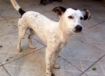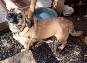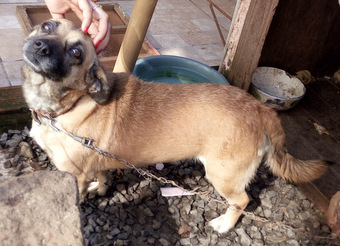 01/09/2018 BOLINHA PARA ADOÇÃO - Bolinha, pura doçura e fofura. Fica presa em uma corrente dia e noite. Precisa urgente encontrar uma família.