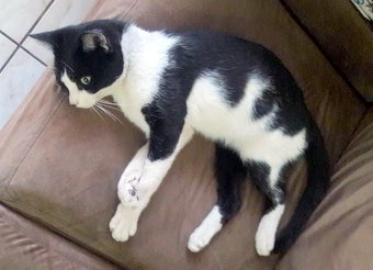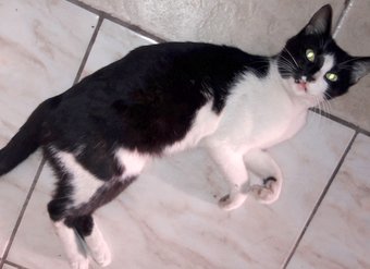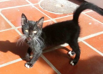 26/05/2018 LINDO GATINHO FRAJOLA - Gatinho para doação. Apareceu na minha porta ontem dia 09/05 e não tenho como ficar com ele. Muito dócil e carinhoso. Macho em torno de 1 aninho. Se dá bem com cachorro e gatos. Contatos com Daniele.