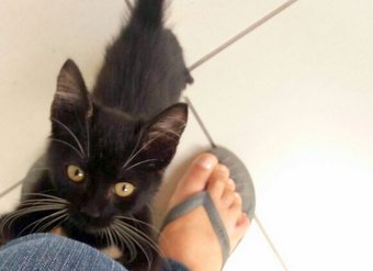28/05/2018 BATMAN - Esse é o Batman, tem em torno de 2/3 meses, é um queridão, muito amoroso. Castração obrigatória e garantida aos 6 meses. Contato para adoção: (51) 98412.1911 Oi ou 98055.5448 Vivo (Whatts) com Cris.